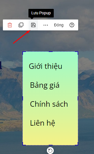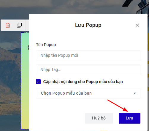 Nếu muốn dùng lại một Popup nào đó nhiều lần hoặc dùng cho landing page khác nữa, bạn chọn Lưu Popup: