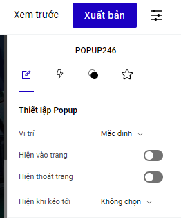 Các cài đặt cho popup