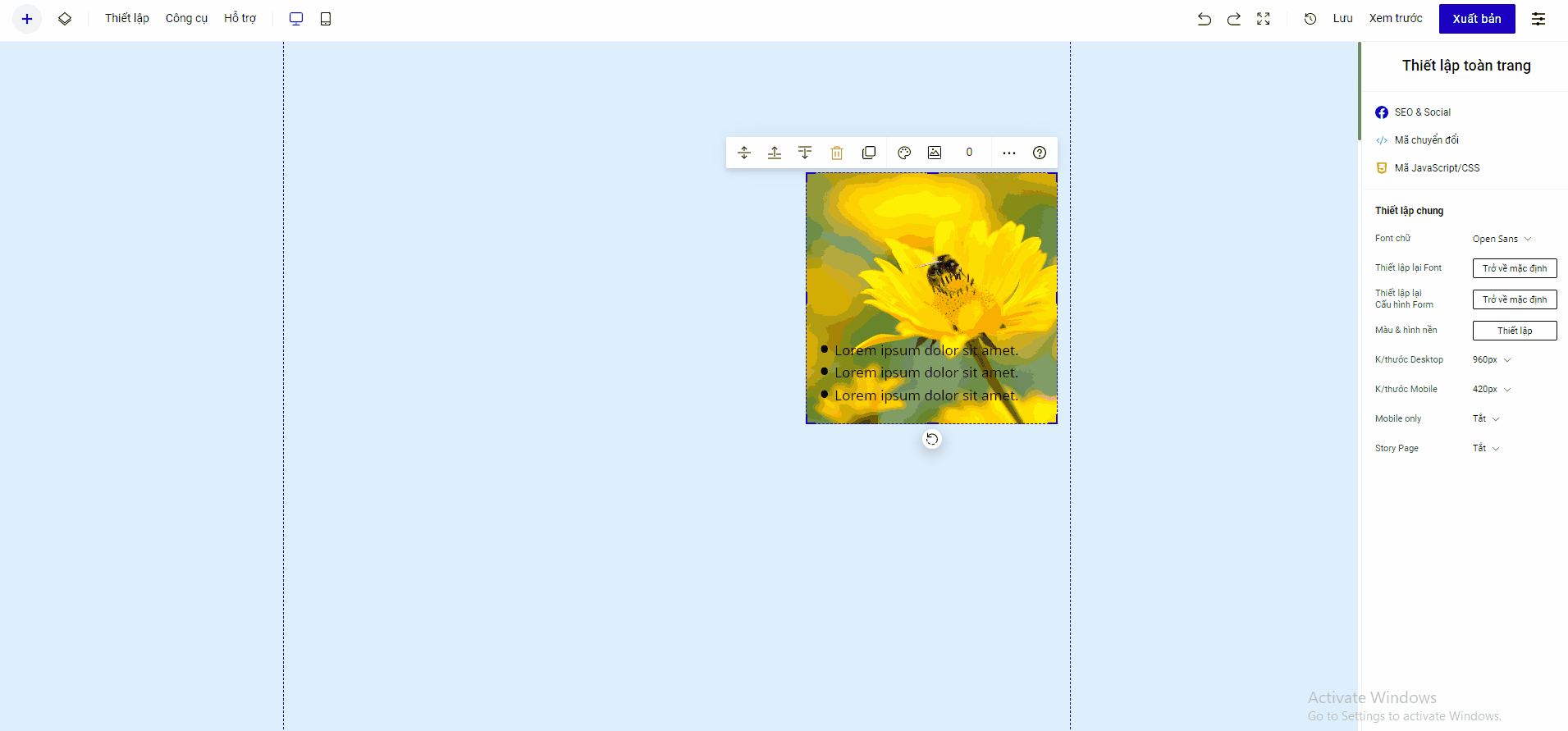 - Cài đặt hiệu ứng hiển thị cho frame, thì các phần tử trong frame cũng sẽ hoạt động hiệu ứng đó.