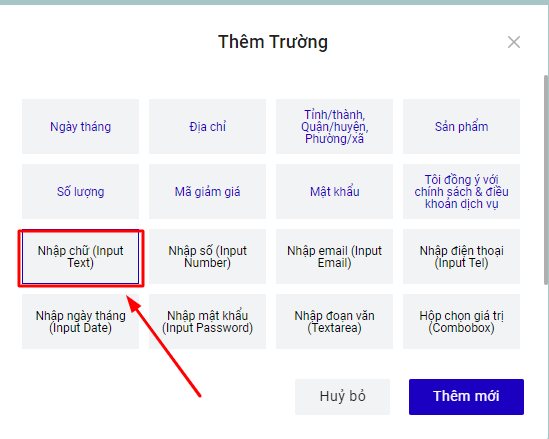 2. Trên form bạn vừa tích chọn đồng bộ dữ liệu, bạn thêm mới 1 trường dữ liệu Nhập chữ ( Input Text )- và thiết lập Tên lấy dữ liệu của trường dữ liệu là Tên lấy dữ liệu của Survey bạn muốn đồng bộ