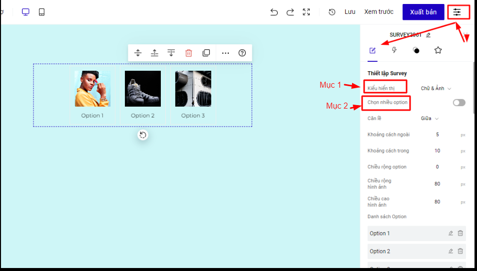 Hình ảnh : nội dung hình ảnh hiển thị trên survey của bạn