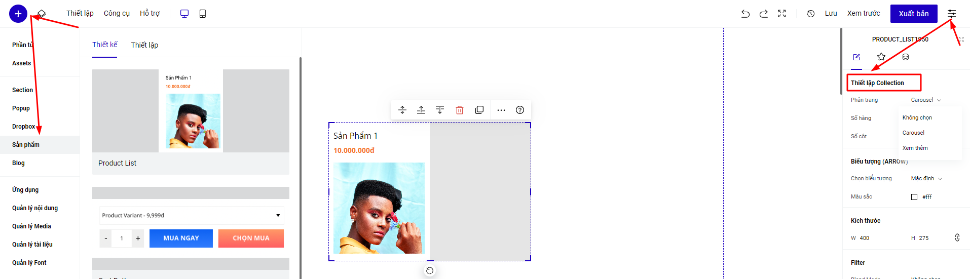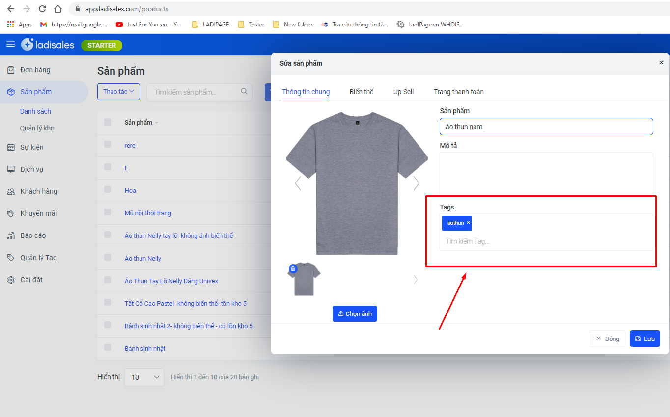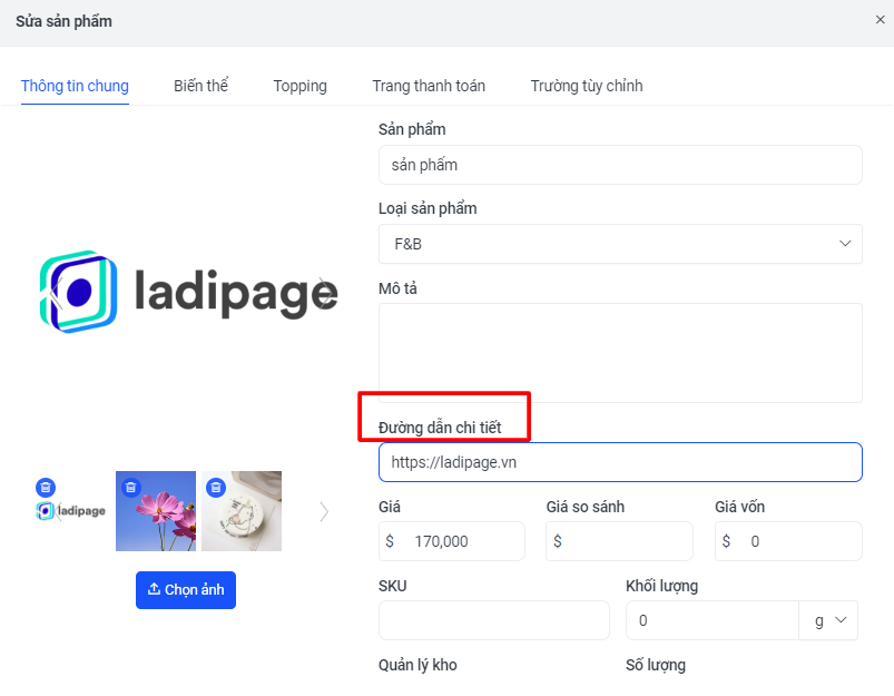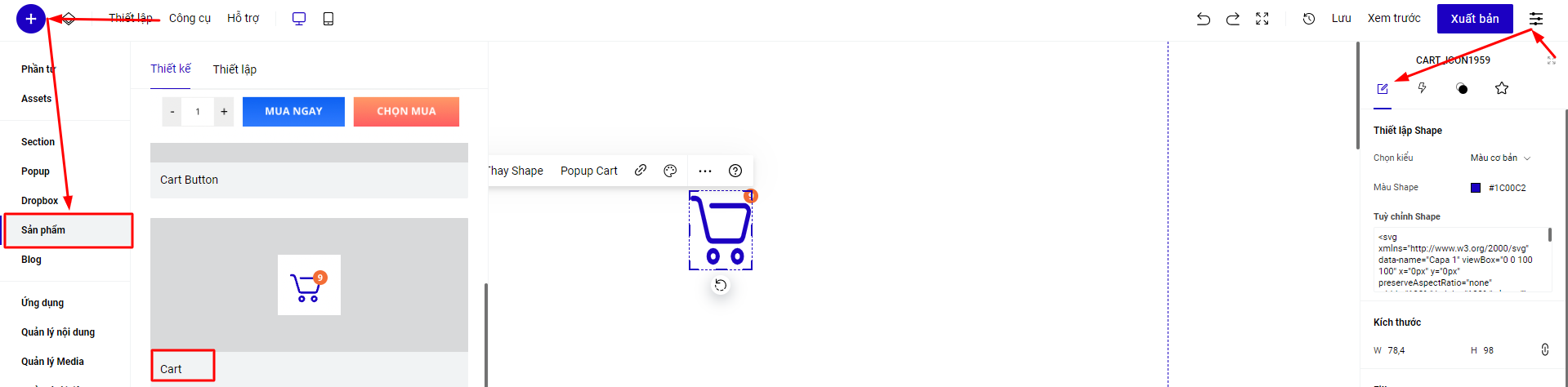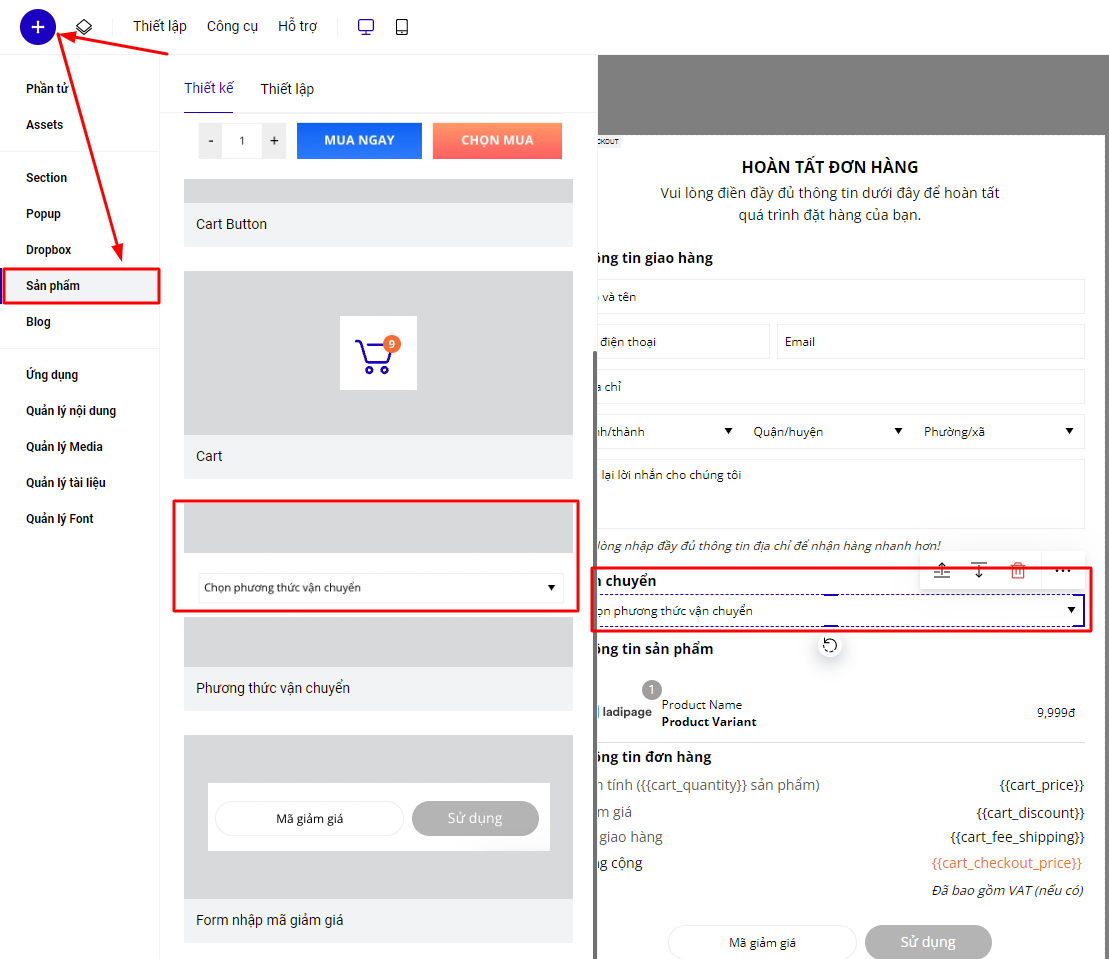 Mục sản phẩm sẽ hỗ trợ khách hàng hiển thị các sản phẩm mà bạn đã tạo bên LadiSales ( https://app.ladisales.com ), Haravan, Sapo, Shopify, Wordpress. Nội dung phần sản phẩm bao gồm Product List- giao diện hiển thị, trình bày các sản phẩm, Cart Button- hiển thị tên sản phẩm, biển thể, và nút mua hàng để khách hàng lựa chọn, Cart Icon- hiển thị danh sách các sản phẩm khách hàng đã thêm vào giỏ hàng, Popup checkout- giao diện điền thông tin đặt hàng, sản phẩm khách hàng đã lựa chọn để gửi về các kênh lưu trữ đã thiết lập