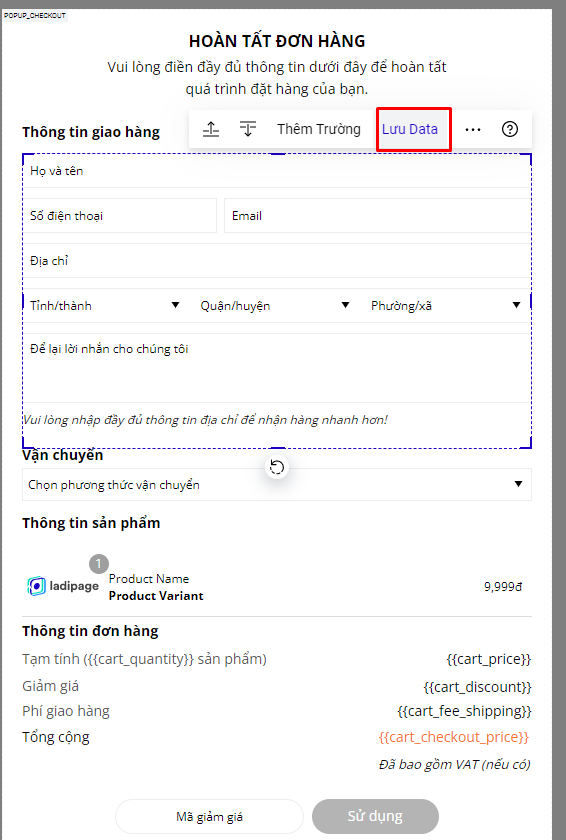 Lưu ý : trong trường hợp sử dụng Third Party Checkout thì sẽ KHÔNG có dữ liệu backup trên trang landingpage