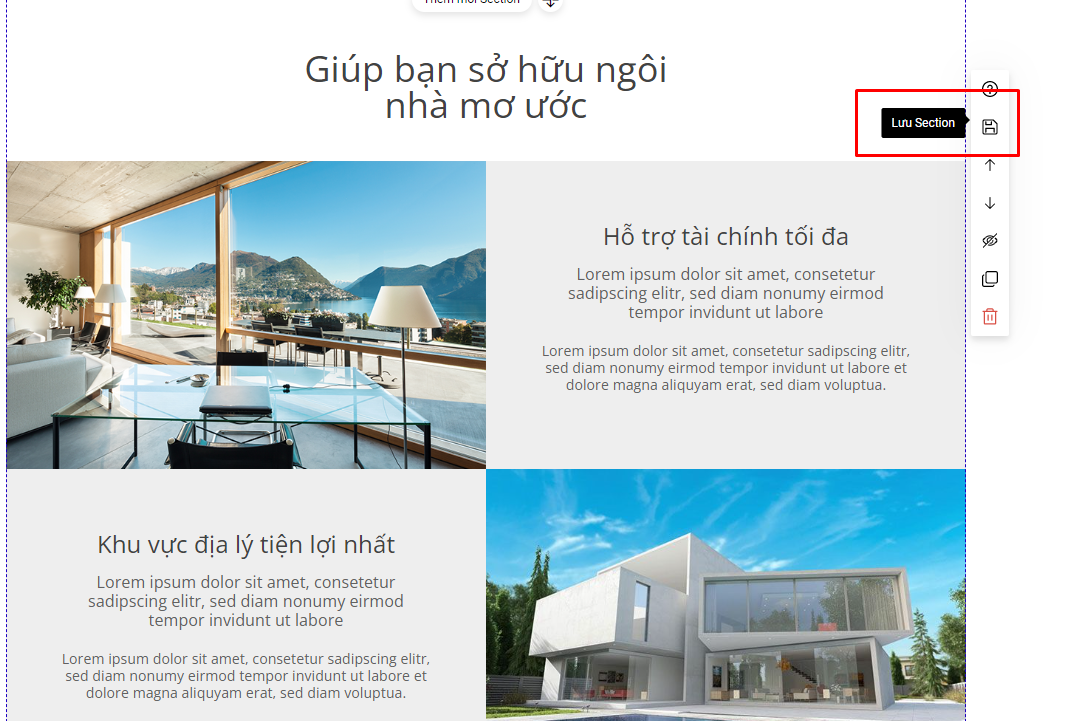 Tính năng Section của tôi sẽ giúp bạn lưu lại các đoạn Section ưa thích mà mình đã thiết kế để lựa chọn sử dụng lại ở các Landing Page khác.
