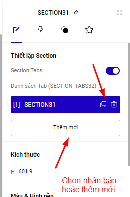 Bạn thêm mới và chỉnh sửa hiển thị của Section Tabs.