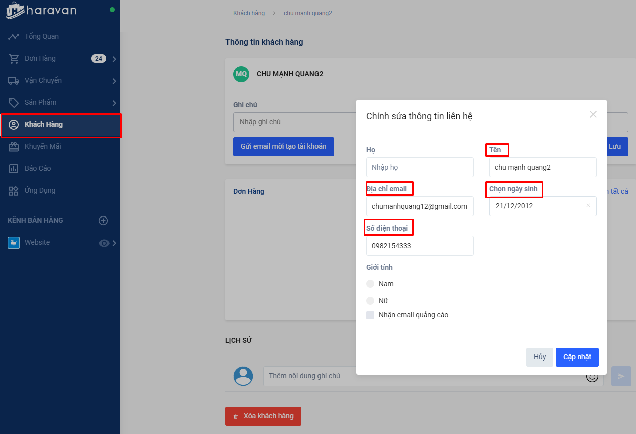 Vậy là bạn đã hoàn thành việc đồng bộ đơn hàng từ Landing Page sang mục Khách hàng trên Haravan.