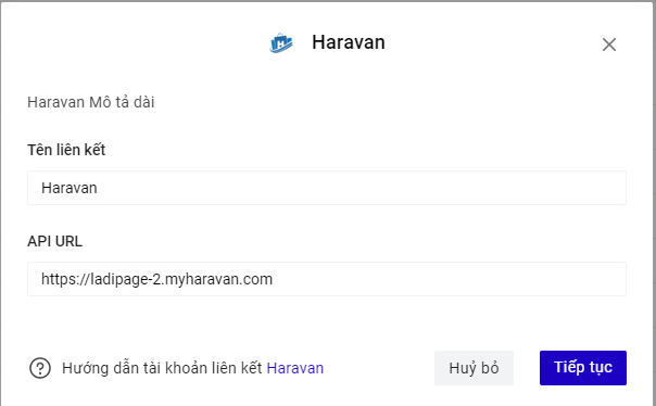API URL: Đường dẫn trang quản lý Haravan của bạn.