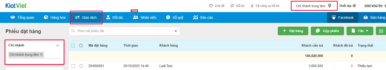 Vậy là bạn đã hoàn thành việc đồng bộ đơn hàng từ Landing Page sang mục Giao dịch, đặt hàng của KiotViet.
