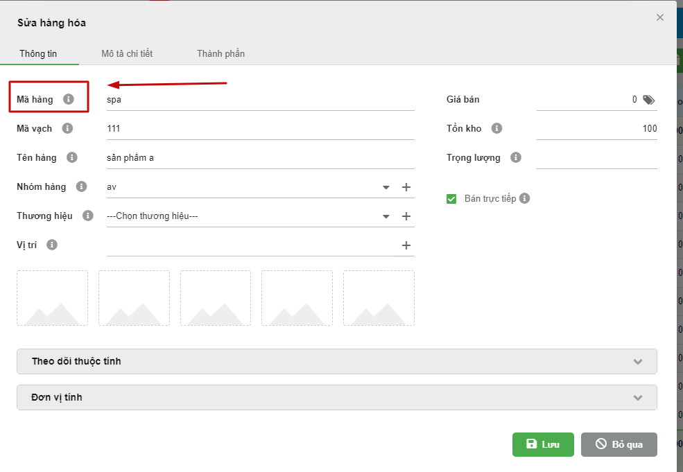 Bạn muốn chọn sản phẩm từ KiotViet để hiển thị trên form của LadiPage,thì KHÔNG tìm kiếm theo tên sản phẩm m à tìm kiếm bằngMÃ HÀNGở bên KiotViet.