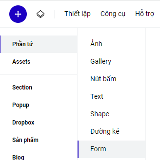 Để tạo form, bạn vào phần Thêm mới- Phần tử ở thanh công cụ - và chọn Form: