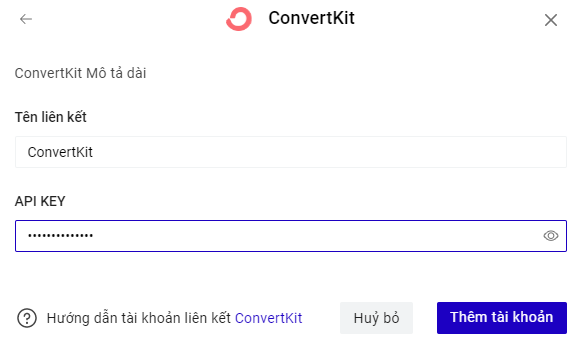 API KEY : lấy từ tài khoản ConvertKit của bạn
