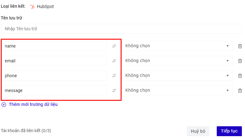 Lưu data về HubSpot