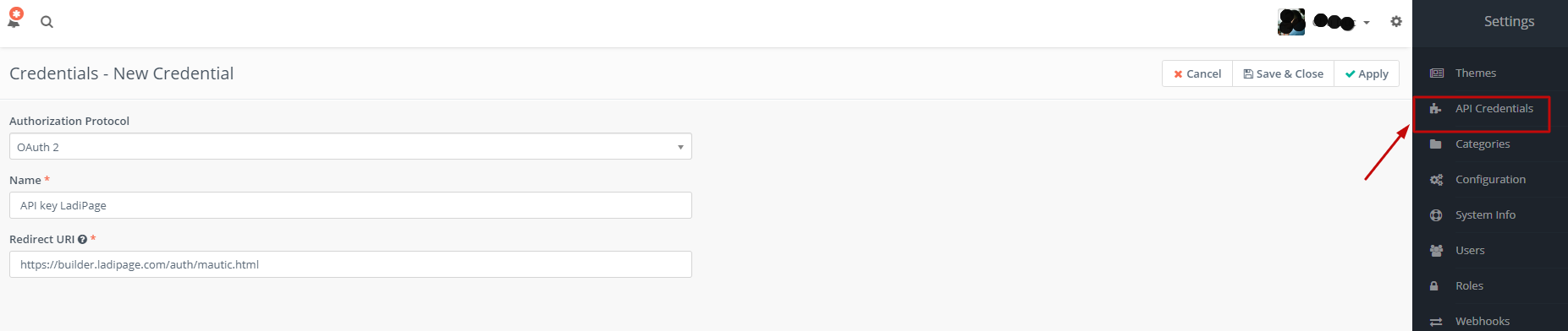 Redirect URL : https://builder.ladipage.com/auth/mautic.html đây là đường dẫn BẮT BUỘC phải sử dụng khi thiết lập API, KHÔNG được thay đổi