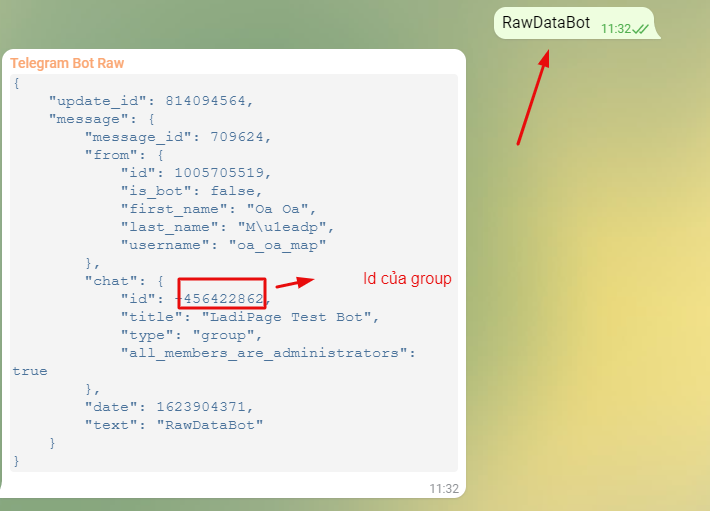 Bước 3: Lấy ID Group Telegram của bạn :456422862( đây chính là ID group )
