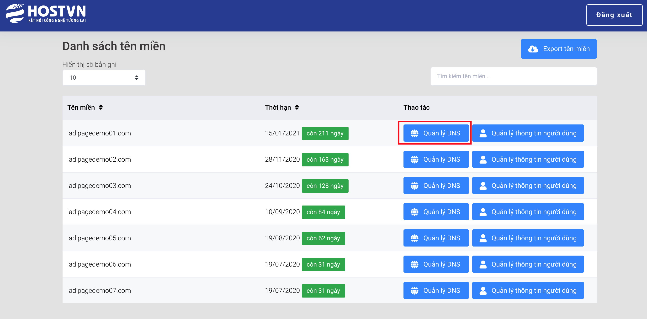 Truy cập trang quản trị tên miền của HOSTVN tại https://dns.hostvn.net/.