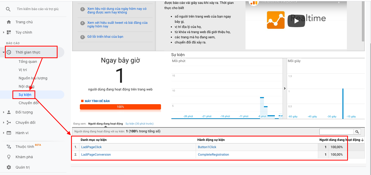 Bình thường để đo lường các sự kiện các bạn cần gắn một đoạn code theo hướng dẫn của Google. LadiPage Builder đã cài đặt sẵn các công thức này, bạn chỉ cần định danh nút bấm đó bằng một cái tên, hệ thống sẽ tự động t ạo code và trả về kết quả cho Google Analytics.