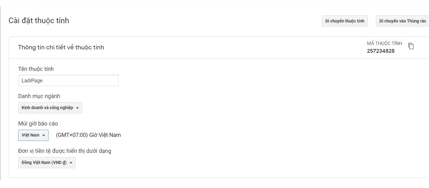 Bước 1: Bạn chọn Thuộc tính có sẵn trong tài khoản GA.