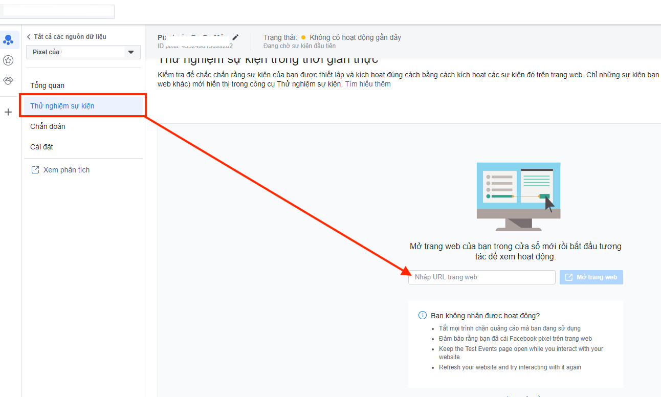 Để cài đặt Facebook Pixel bạn làm theo các bước sau đây: