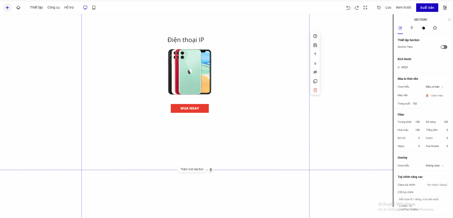 Lưu ý: Nếu bạn sử dụng kiểu thiết kế Responsive, bạn không hủy nhóm đã tạo trên 1 trong 2 giao diện desktop và mobile, vì sẽ ảnh hưởng tới hiển thị và sắp xếp của giao diện.