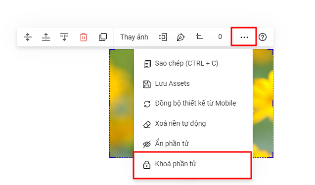 Lựa chọn phần tử bạn muốn khóa và chọn biểu tượng "..." rồi chọn Khóa phần tử: