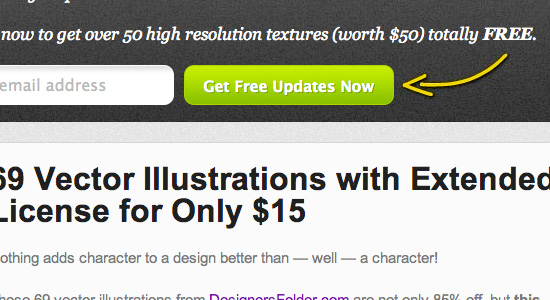 Mũi tên chỉ dẫn: Hãy thử một mũi tên chỉ khách hàng đến nút CTA, rất rõ ràng và mang tính điều hướng.