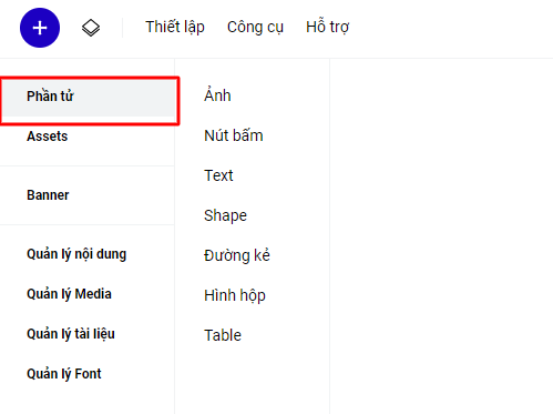 Mục "Thêm mới- Phần tử" bên tay trái là các phần tử để bạn có thể tạo hoàn thiện nội dung cho phần Banner của mình: