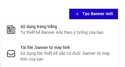 Các thao tác để thiết kế và tạo Banner Ads sẽ tương tự như đối với Landing Page. Bạn có thể thiết kế Banner từ 1 giao diện trắng hoặc tải các file .banner đã tạo để chỉnh sửa và sử dụng: