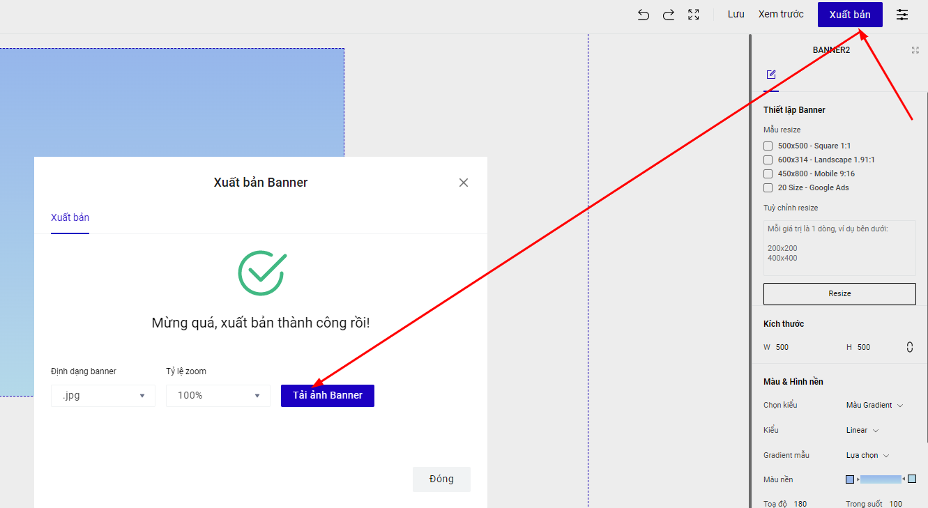 Banner sau khi đã tạo hoàn thiện, có thể tải các ảnh Banner về để sử dụng các ảnh đó