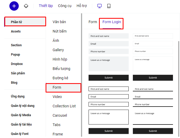 URL đăng nhập : trang này yêu cầu BẮT BUỘC là có chứa form login được tạo từ mục Thêm mới- Form- Form login
